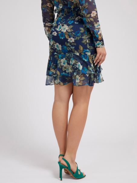 Fustă Cu Imprimeu Multiplu Albastru Guess