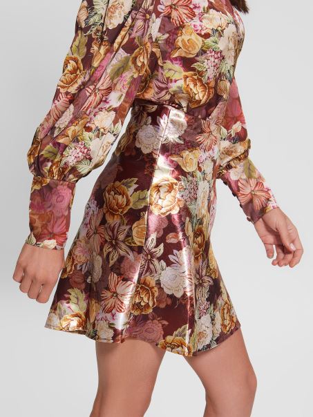 Satin Strălucitor Adaugă Strălucire Acestei Fuste Concepute într-un Imprimeu De Tapiserie Florală Cu O Potrivire Evazată. Inchidere Laterala Invizibila Cu Fermoar. Conține Fibre De Plastic Reciclate.