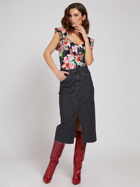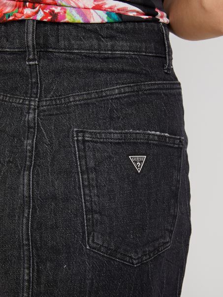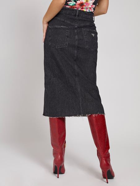 w1yd90d3yg4- fustă Din Denim Longuette Din Bumbac Elastic.