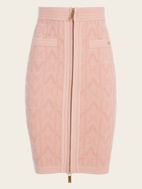 Aduceți Un Element șic în Garderoba Dumneavoastră Cu Această Fustă Concepută într-o Construcție Din Tricot, Cu Imprimeu Cu Logo-ul Peste Tot Cu Detalii De Chenille. Prezentând O Talie Cu Nervuri și Buzunare Cu Pasare, Cu închidere Frontală Cu Fermoar La Vedere.