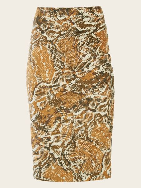Treceți Elegant De La Zi La Noapte Cu Această Fustă Creion Elegantă. Completat Cu Imprimeu Peste Tot Cu Piele De șarpe, Siluetă Care îmbrățișează Curbe și O Parte Plisată Cu Fante.