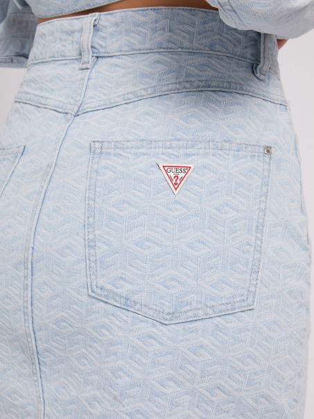 w2pd0gd4s33- fustă Midi Din Denim Din Amestec De Bumbac.