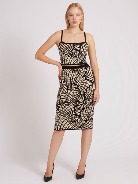 fustă Midi în Amestec De Viscoză.