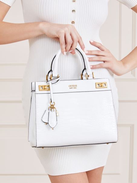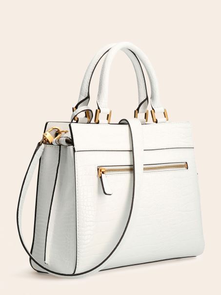 Geantă De Mână Katey Cu Imprimeu Croco Alb Guess