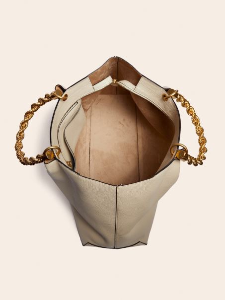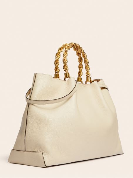 Geantă De Mână Maxi Aida Din Piele Naturală Albă Guess