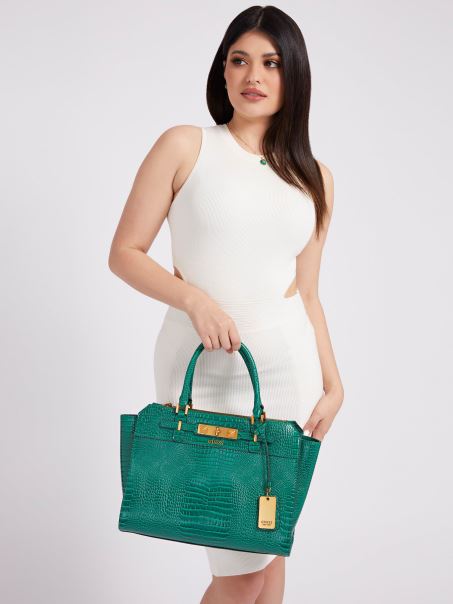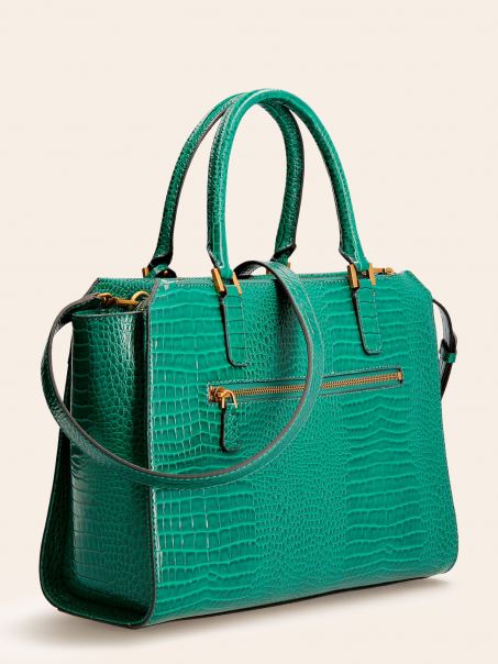 Geantă De Mână Verde Cu Imprimeu Rafie Croco