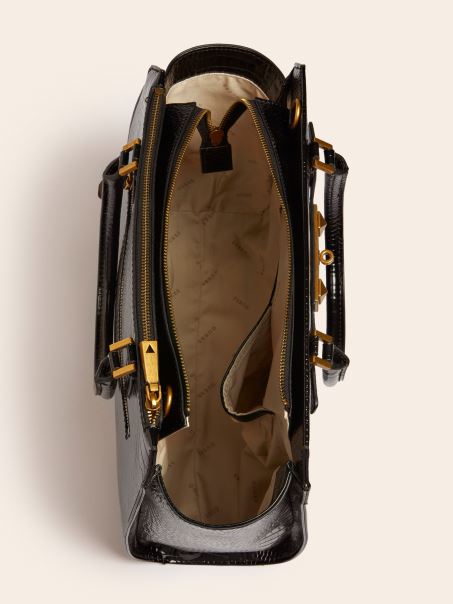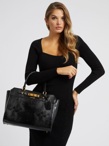 Geanta De Mana Cu Imprimeu Croco Rafie Guess Neagra