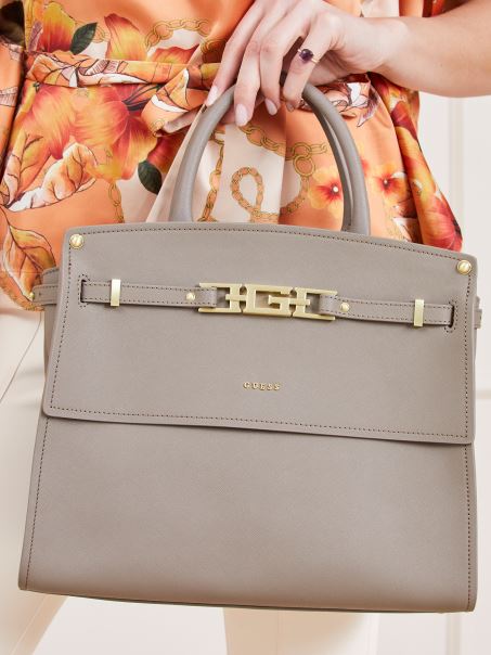 Geanta De Mana Din Piele Naturala Cristina Guess Gri
