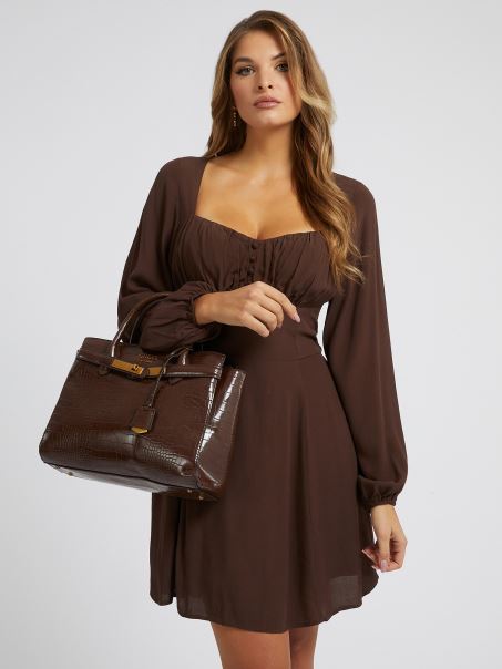 Geanta De Mana Enisa Cu Imprimeu Croco Maro Guess