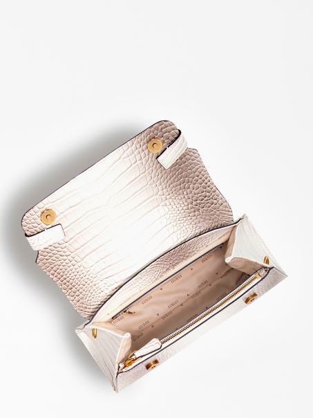 Geanta De Mana Guess Enisa Cu Imprimeu Croco Alb