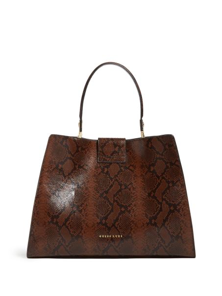 Un Imprimeu Bogat De Piton Acoperă Această Geantă De Lux Din Piele Naturală, Cu închidere Cu Blocare, Emblemă Cu Logo La Spate și Husă Interioară.