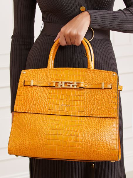 Guess Megan Luxe Geanta De Mana Din Piele Naturala Portocalie