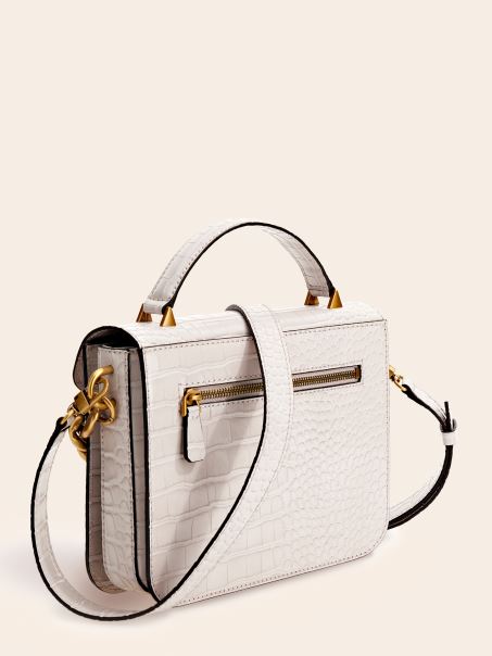 Guess Retour Mini Geanta De Mana Cu Imprimeu Croco Alb