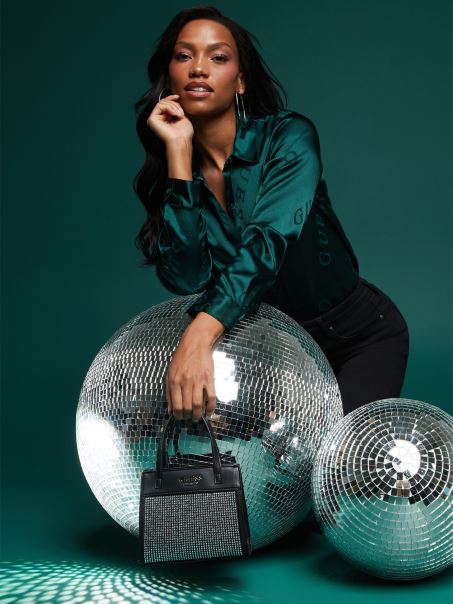 Guess Taylor Rhinestone Mini Tote Negru