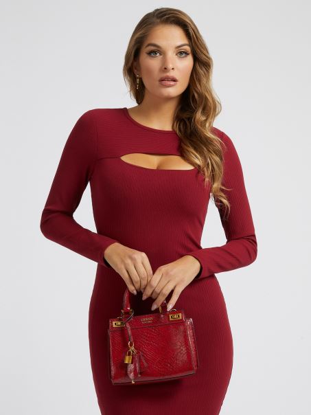 Mini Geantă De Mână Guess Katey Cu Imprimeu Piton Roșu