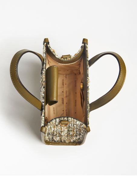 Mini Geantă De Mână Guess Silvana Tweed Verde
