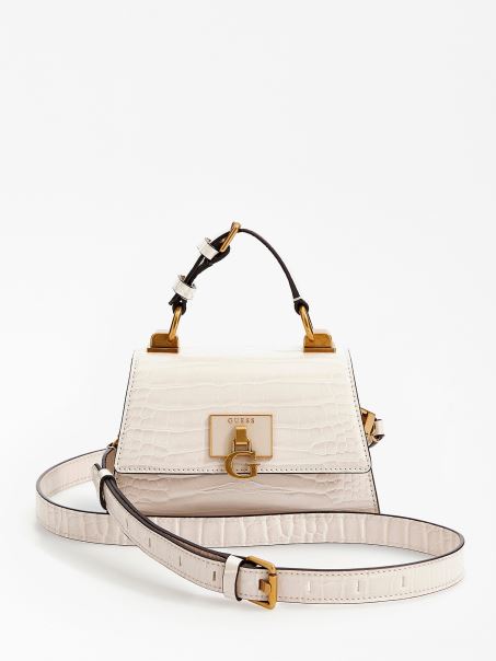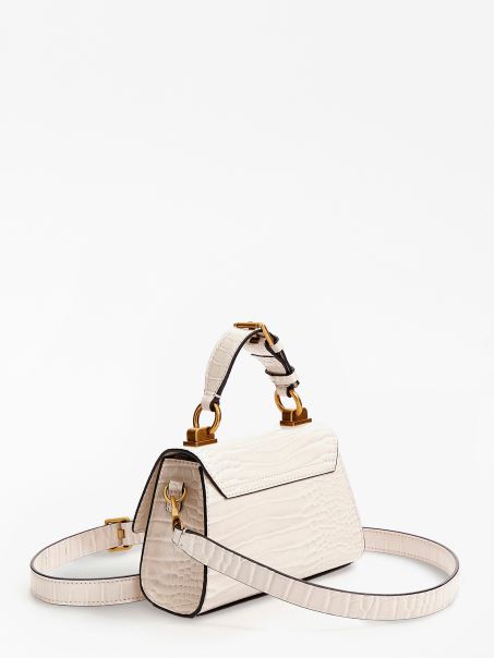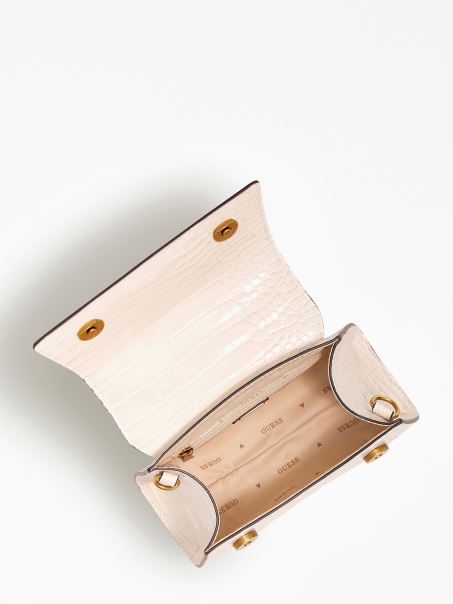 Mini Geantă De Mână Stephi Cu Imprimeu Croco Alb Guess