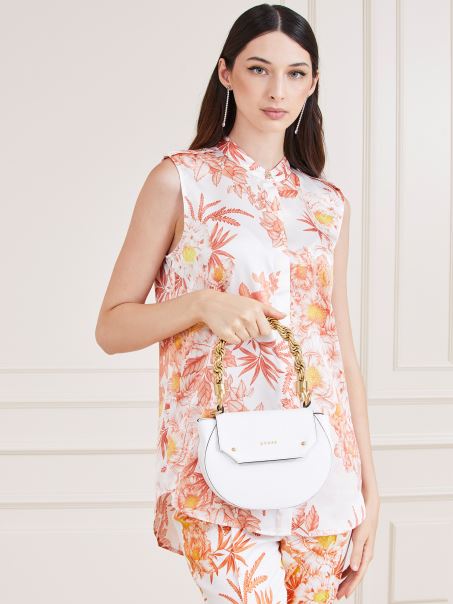 Mini Geanta De Mana Aida Alba Din Piele Naturala Guess