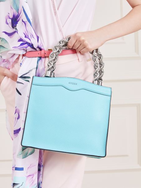 Mini Geanta De Mana Aida Albastra Din Piele Naturala Guess