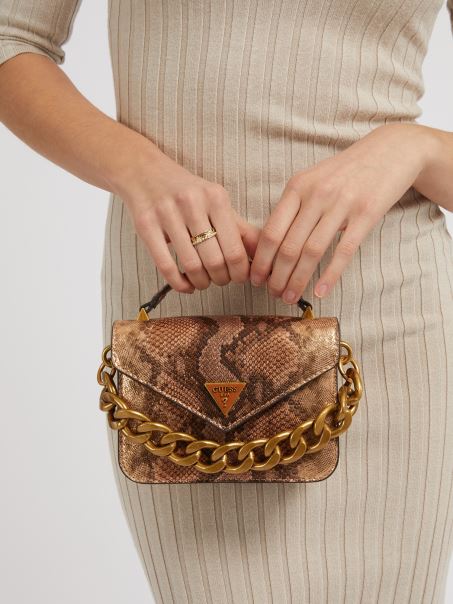 Rose Gold Spate Python Print Micro Geanta De Mana Guess