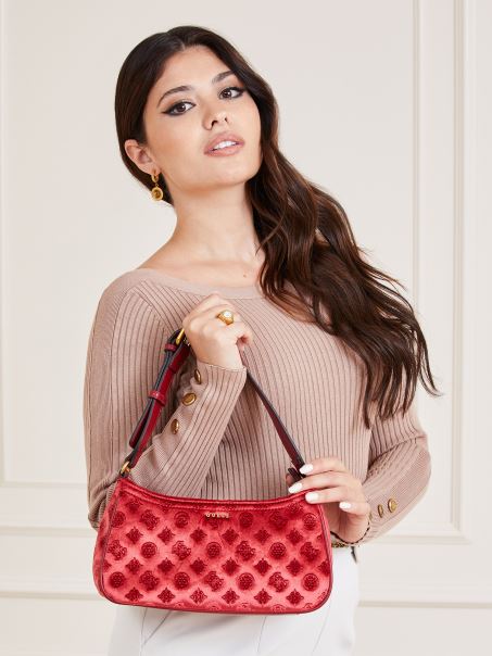 Geantă De Umăr Guess Kimi Din Catifea Roșie