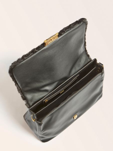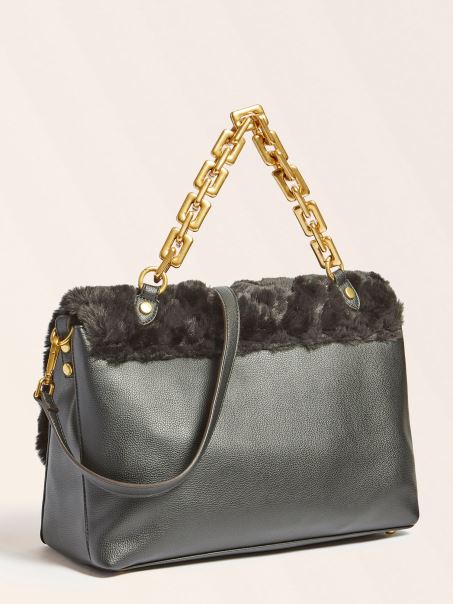 Geantă De Umăr Guess Neagră Helma Din Blană Artificială