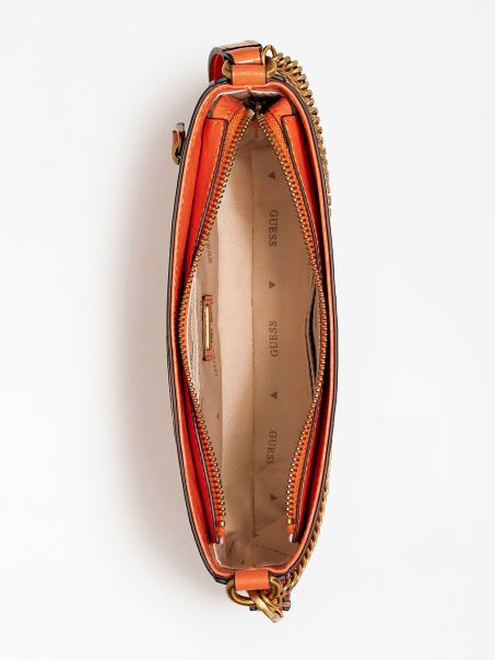 Geantă De Umăr Portocalie Guess Katey Cu Imprimeu Piton