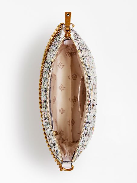 Geantă Găleată Mini Cessily Tweed Aurie Guess