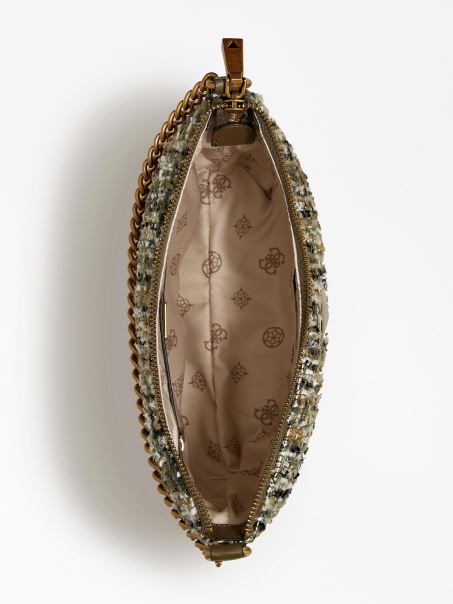 Geantă Găleată Mini Cessily Tweed Verde Guess