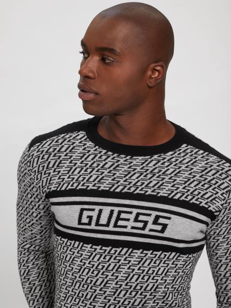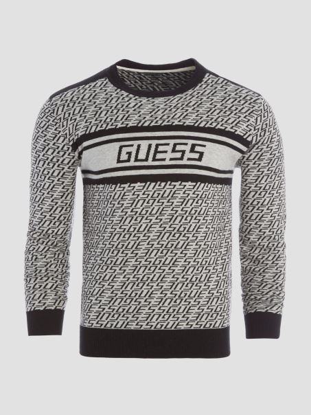 Faceți O Declarație îndrăzneață Cu Acest Pulover Din Amestec De Lână, Cu Imprimeu Cu Logo Jacquard, Dungă Frontală Cu Logo, Mâneci Lungi și Ornamente Contrastante. Contine Fibre De Bumbac Organic.