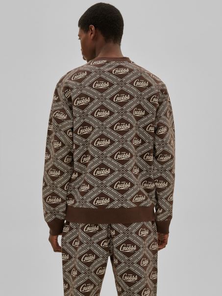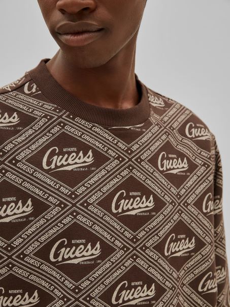 Home| Bărbați| îmbrăcăminte| Hanorace| Hanorac Maro Cu Logo Multiplu Guess
