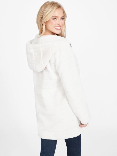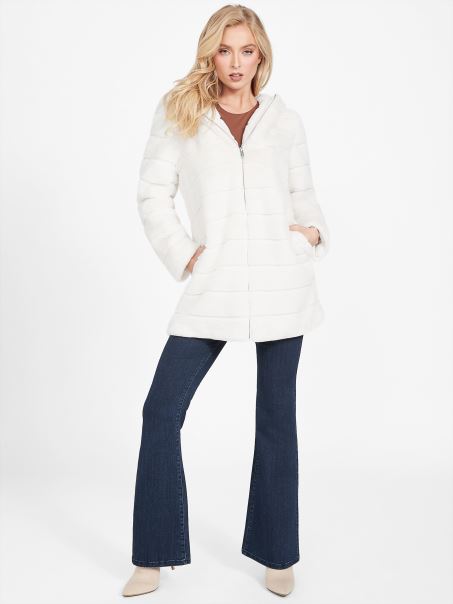 Hanorac Lonnie Din Blană Artificială Porumbel Alb Guess