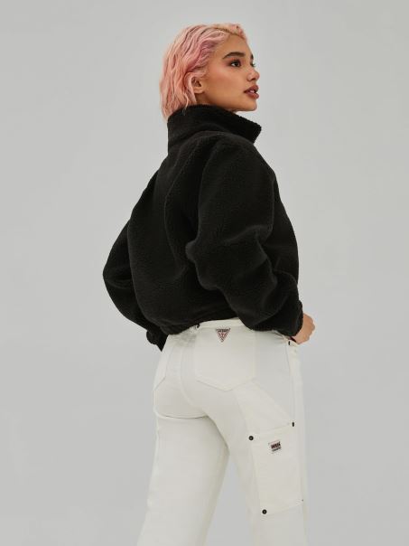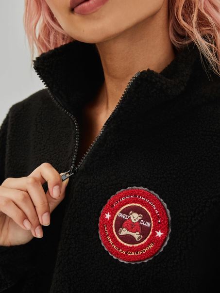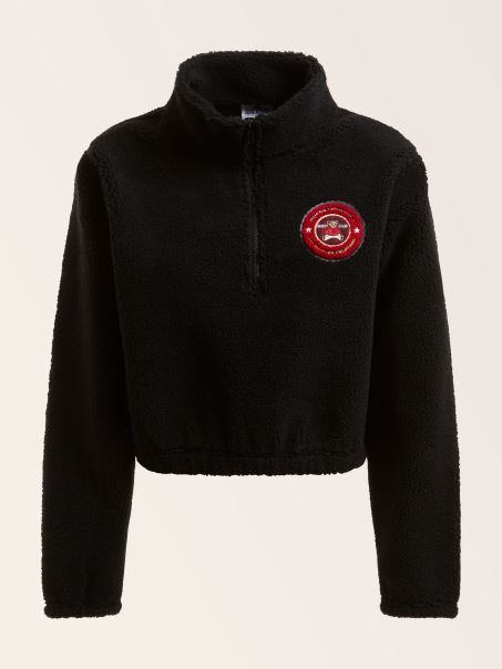 Hanorac Crop Negru Guess Cu Logo în Față