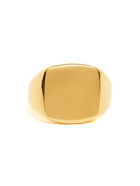 un Inel Cu Sigiliu Lustruit, Auriu, Realizat Din Oțel Inoxidabil, Are O Față Dreptunghiulară Tip Portret Periată.