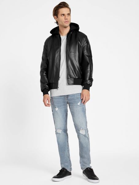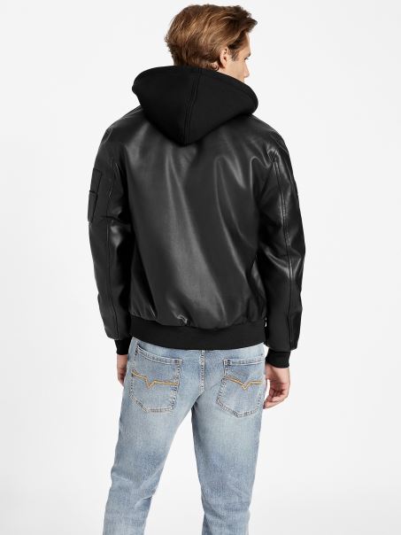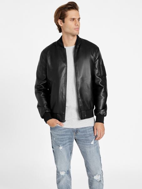 Ridică Un Aspect Atemporal Cu Această Jachetă Din Piele Artificială. Proiectat Cu Un Plasture Cu Logo în Relief Pe Mânecă, Buzunare Laterale Duble Cu Căptușeală Plisată, Buzunar Pe Mânecă Cu Fermoar și închidere Frontală Cu Fermoar.