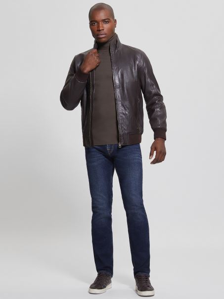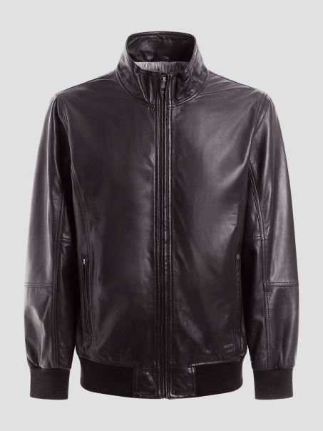 O Jachetă De Lux Din Piele Naturală, Cu O Senzație Moale, Are Un Decolteu Simulat, Mâneci Lungi, Buzunare Frontale Cu Fermoar și Bordură Cu Nervuri. Complet Cu Buzunare Interioare, Căptușeală Imprimată și închidere Cu Fermoar.