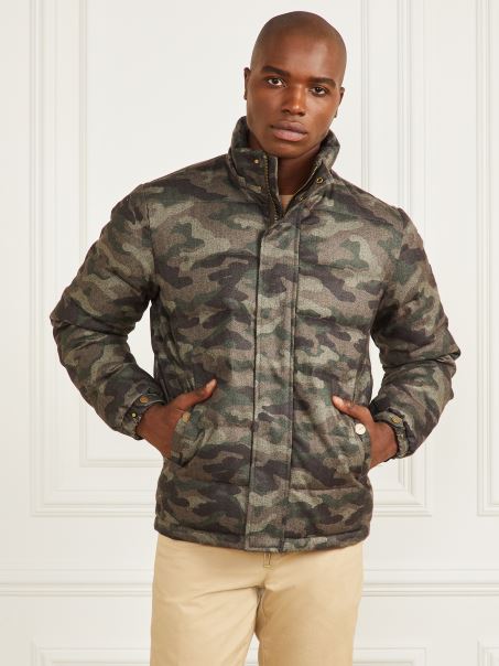 Geacă Pufă Cu Glugă Guess Camou Herringbone Melange