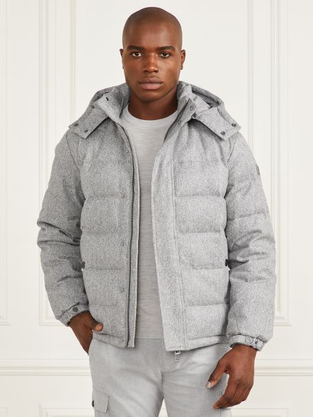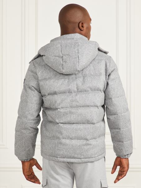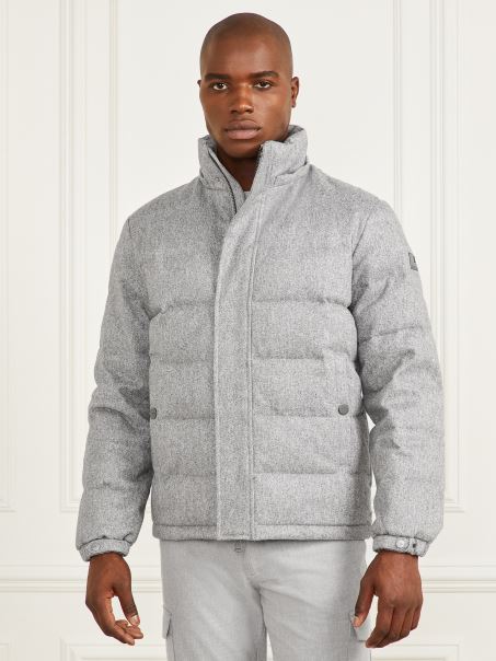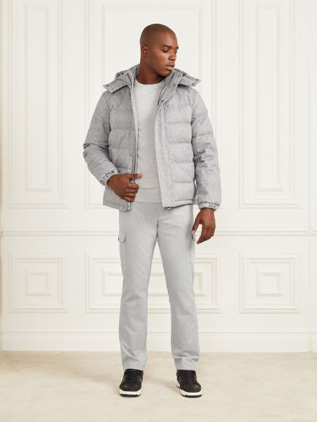 Geacă Pufă Cu Glugă Guess, Gri, în Os De Pește, Melange