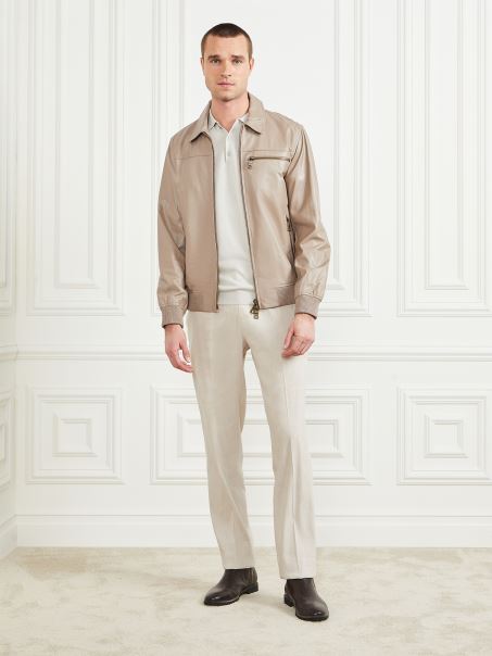 Un Element De Bază Rafinat Pentru Bărbatul Modern, Această Jachetă De Zbor Este Concepută într-o Piele Naturală Netedă, Cu Guler Pliat Ascuțit și Manșete și Tiv De Jos Cu Coaste. Completat De Un Buzunar Cu Fermoar La Piept Si Inchidere Frontala Cu Fermoar.