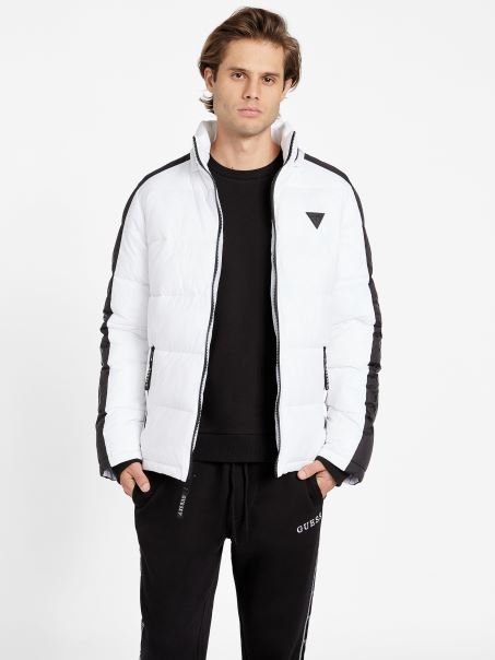 Găsește-ți Căldura De Zi Cu Zi Cu Acest Hanorac Cu Glugă Puff Color-bloc. Cu O Confectionare Matlasata, Hanorac Detasabil, Buzunare Laterale Duble, Material Cu Bandă Cu Logo Pe Mâneci, Plasture Cu Logo Triunghi și închidere Cu Fermoar Frontal. Realizate Din Fiber Din Surse Responsabile.