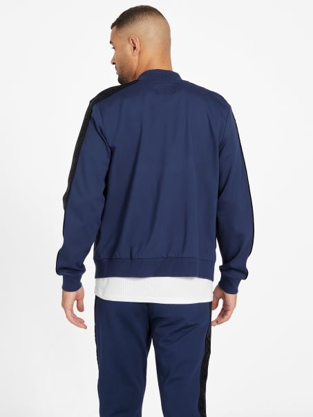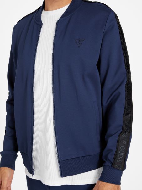 Jachetă Bomber Cu Bandă Logo Jon Mătase Albastru Guess
