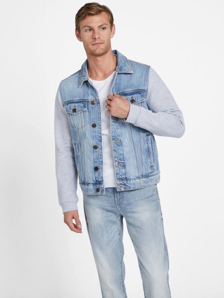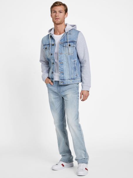 Jachetă Cu Glugă Guess Reese Denim Cu Spalare Lejeră
