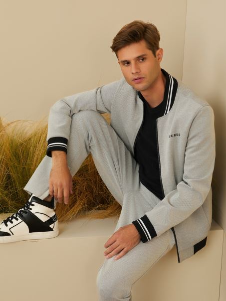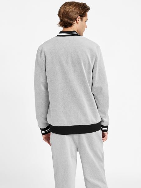 Alergați Liber în Acest Esențial De Zi Cu Zi. Această Jachetă De Zbor Are O Fabricație Texturată Peste Tot, Ornamente în Dungi în Stil Varsity, Logo Brodat și închidere Frontală Cu Fermoar.