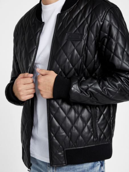 Jachetă Din Piele Artificială Matlasată Guess Peter Negru Jet