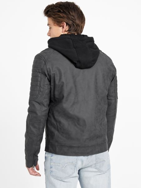 Jachetă Moto Guess Preston Din Piele De Căprioară Artificială, Negru Jet