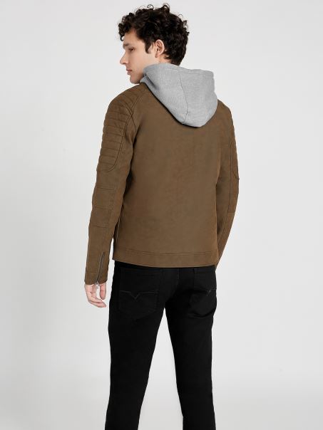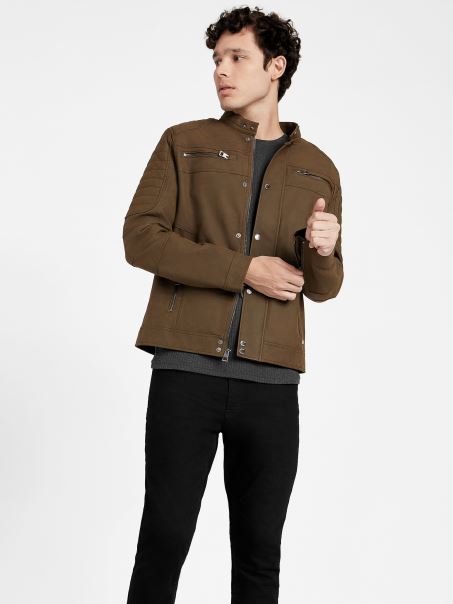 Jachetă Moto Preston Din Piele De Căprioară Artificială Guess Cognac
