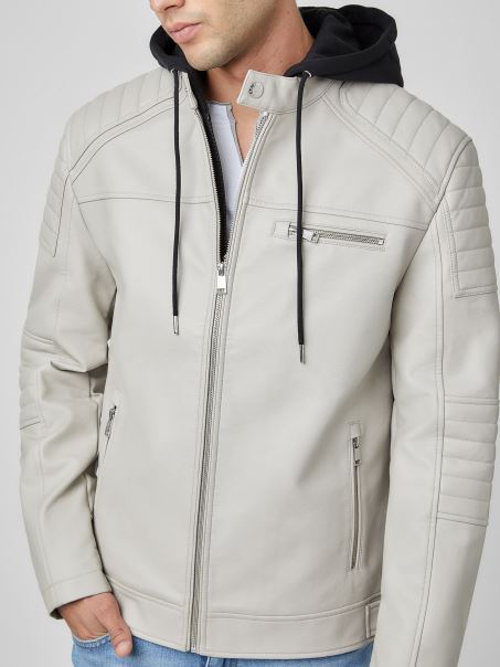 Completează-ți Aspectul Cu This Jachetă De Motociclist Din Piele Artificială, Cu Căptușeală Matlasată De-a Lungul Mânecilor Lungi și O Inserție Detașabilă Din Bumbac Din Jerseu Cu Glugă. Buzunar Cu Fermoar La Piept și închidere Cu Fermoar în Față.