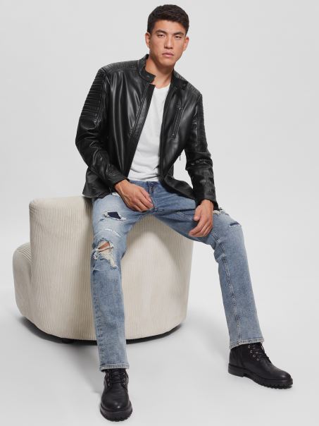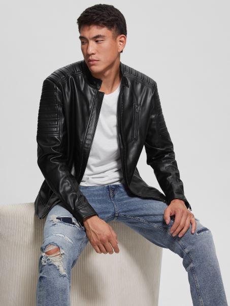 Adaugă Un Avantaj Selecției Tale De îmbrăcăminte Exterioară Cu Această Jachetă De Motociclist Din Piele Artificială, Cu Guler Stand, Cu Butoane De Siguranță, Umerii Căptușiți, Buzunare Frontale Cu Fermoar și închidere Cu Fermoar. Căptușeală Interioară Mătăsoasă.