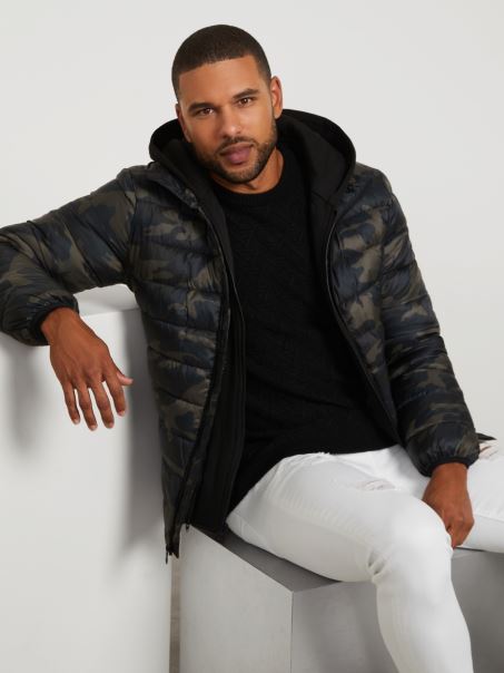 Jachetă Pufă Cu Glugă Guess Hampton Camuflaj