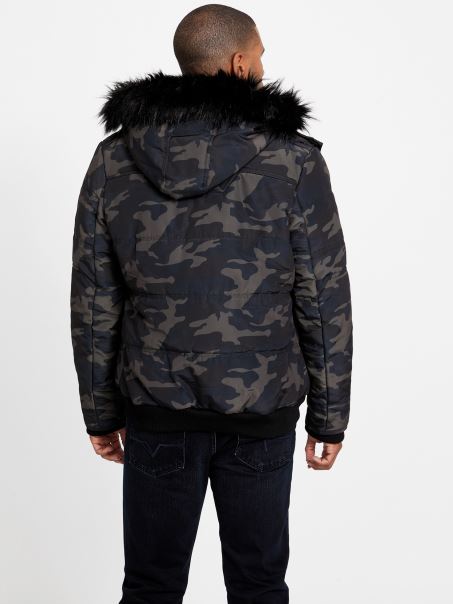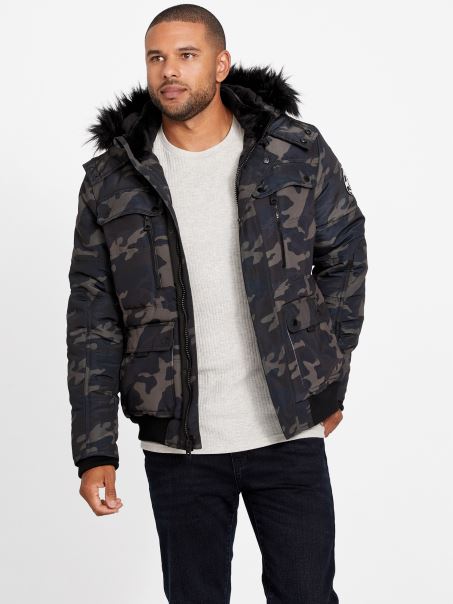 Creează O Nouă Cale în This Jachetă Puf. Proiectat Cu Guler Stand, Hanorac Detasabil Cu Căptușeală Din Blană Artificială, Buzunare Utilitare Multiple, Plasture Cu Logo, Bordură Cu Nervuri și închidere Cu Fermoar în Față.
